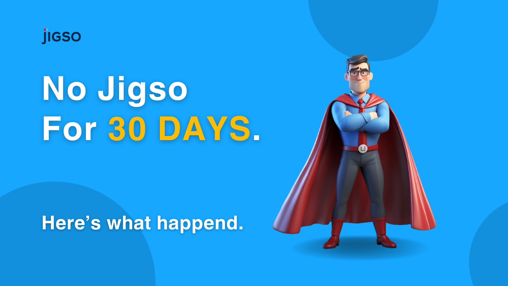 Enter the experiment. My smartwatch and all the time tracking I'd been doing made me curious. How much time and energy did Jigso actually save me? And if I stopped using it, how would it impact my day-to-day and overall efficiency? Would I be back to caffeine-fuelled all-nighters and jarring tab hopping? I decided to go cold turkey. No Jigso for 30 days. My plan was to track my Jigso-free work day for 30 days. What I discovered blew me away.
